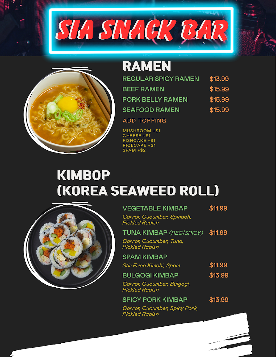 Welcome to Sia Fusion Eatery, a vibrant haven for Asian fusion cuisine nestled in the heart of Newark, California. This dynamic restaurant creatively blends traditional Korean flavors with familiar American favorites, making it a must-visit for food lovers seeking something unique and delightful.